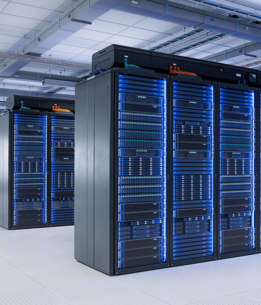 データセンター:インターネットサービスを動かすためのコンピュータを大量に設置する施設